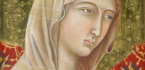 Maestà, pala d'altare di fronte Duomo di Siena,tempera ad olio, 58x 52,5 cm...