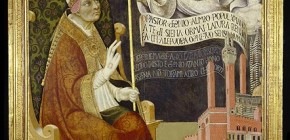 In basso ai due lati sono seduti Atanasio a destra ed Agostino a sinistra. Entrambi hanno ...