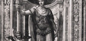 Una delle scene di giustizia romana affrescata sul soffitto della Sala del Concistoro del ...