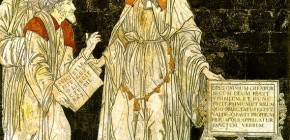 Nell'esagono centrale si vedono le figure di re Acab a sinistra ed Elia a destra, contorna...