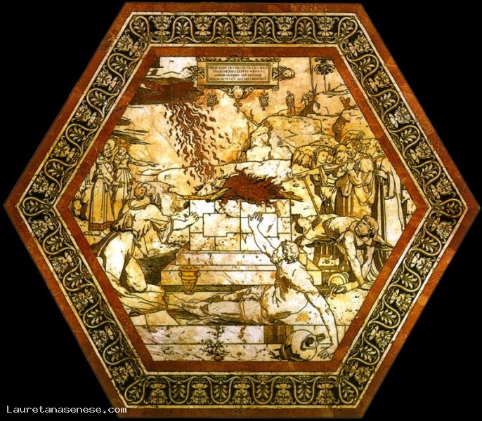 028 Tarsia pavimentale dell'Esagono centrale - Sacrificio di Elia Siena