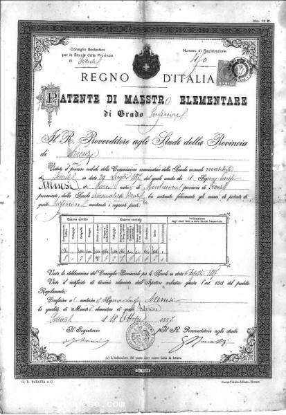 1887 - Patente di Maestro Elementare Superiore di Luigi Ateniesi Asciano