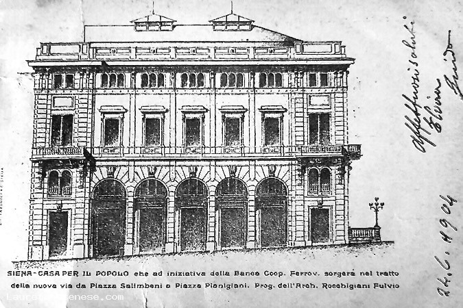 SIENA - CASA PER IL POPOLO che ad iniziativa della Banca Coop. Ferrov. sorgerá nel trattodella nuova via da Plazza Salimbeni a Piazza Planiglani. Prog. dell'Arch. Rocchigiani Fulvio