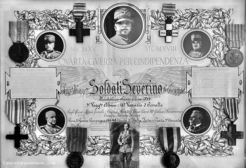 Si proprio il babbo di Osvan e nonno di Claudio. Qualcuno ci aveva raccontato che aveva passato molta pare della sua vita a combattere, anziche vivere serenamente con la propria famiglia, ma non ci saremmo aspettati di trovare ben 4 medaglie al valore e 4 croci di guerra, tutte meritate durante la prima guerra, combattuta nel reparto di assalto degli Alpini.