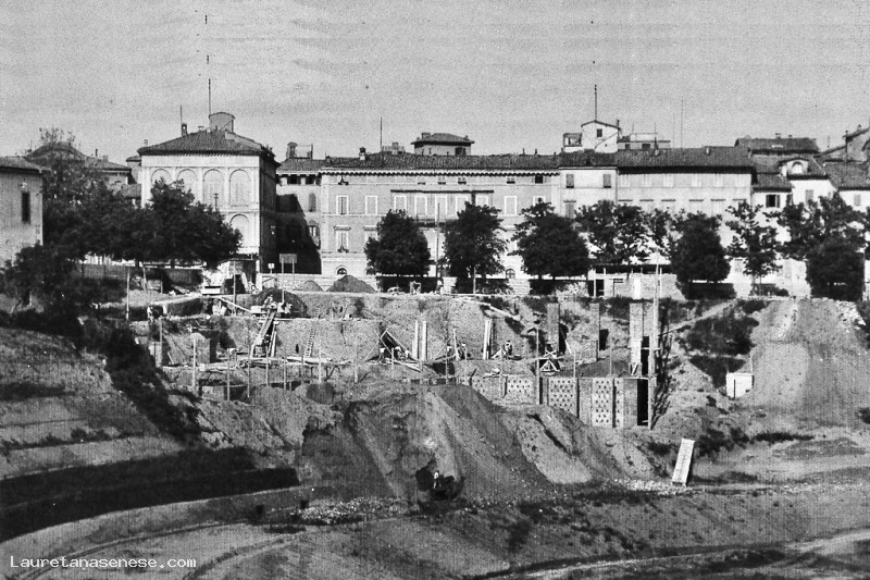 Foto che coglie un momento particolare: la costruzione del grande edificio dell'Hoter Excelsior.