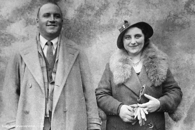 Gli sposi: Gino Magi, Fattore di Poggio Pinci e Gina Sanleonini in partenza per il viaggio di nozze, dopo la celebrazione del matrimonio. Destinazione Genova, dove saranno ospitati da Gina, sorella dello sposo.