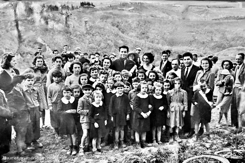 Lo scatto fu effettuato per ricordare la partecipazione come comparse di tutti gli scolari del luogo, ad un film girato nei dintorni di Monte Oliveto Maggiore.