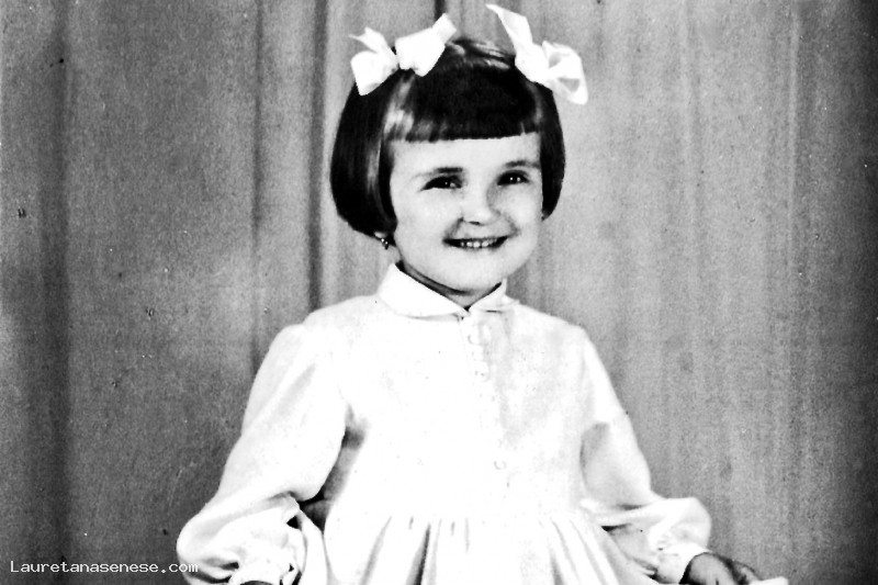 Paola Boccini da piccola, con un faccino sorridente che somiglia a mamma Marisa.
