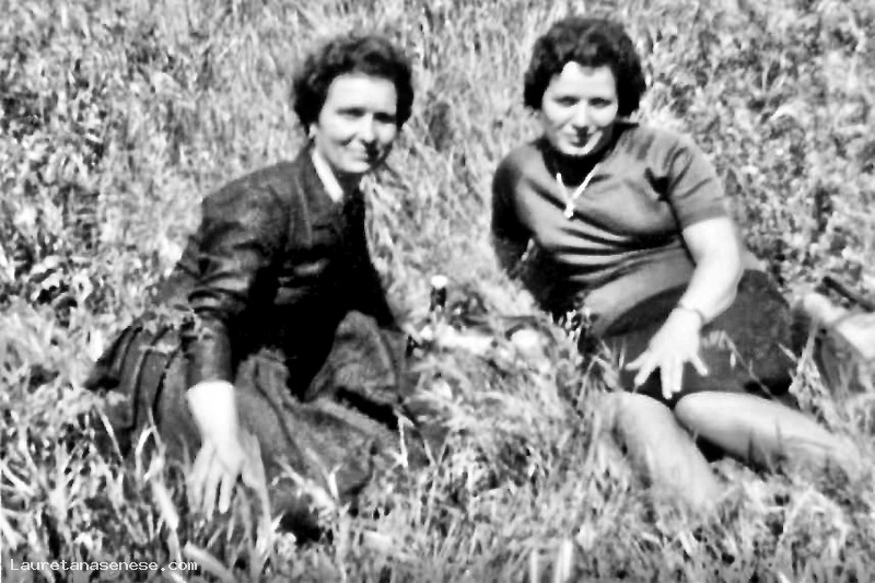 Le due signore sedute su un prato sono, partendo da sinistra: