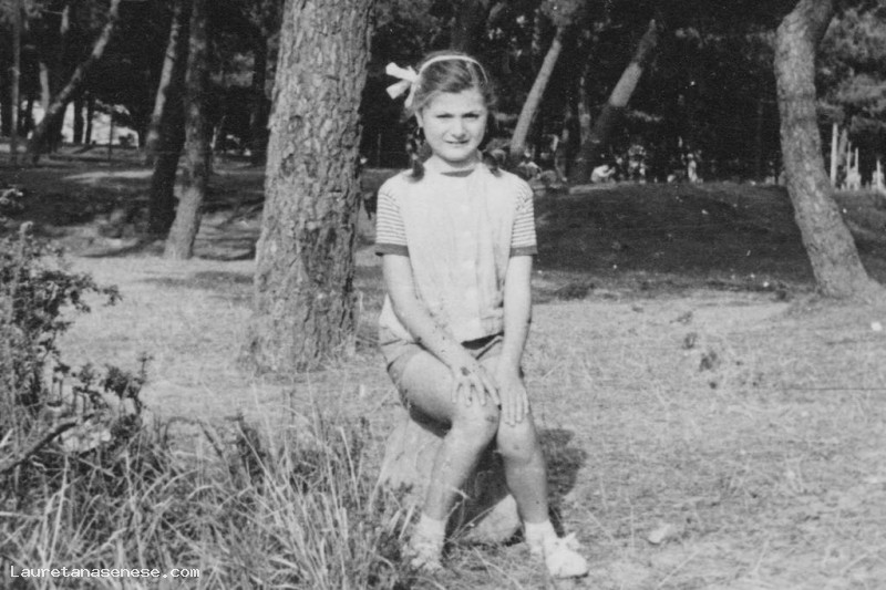 Beatrice Mancini, ancora bambina, ritratta seduta nella pineta sopra a Montalcino.