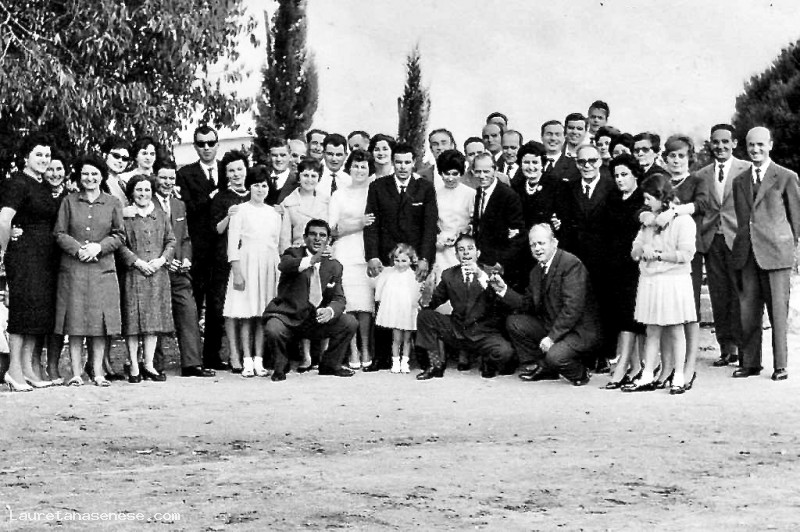 Foto ricordo, sicuramente l'unica nell'aia dell'allora Podere San Marco, ora trasformato in villetta, degli sposi: