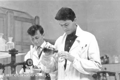 Questo studente è ritratto nel laboratorio di chimica del "Sarrocchi" mentre fa esperimenti. La descrizione dovrebbe bastare a farvelo riconoscere, anche se da tanti anni non vive più ad Asciano.