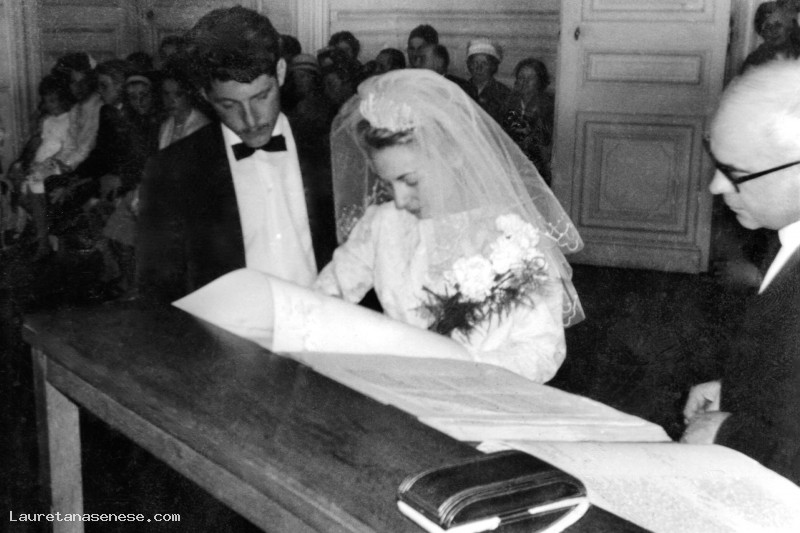 Matrimonio civile nel Comune di Versailles, con un cittadino francese, di Elda Neri, sorella maggiore di Aldo e Enzo Neri, conosciuti localmente come "Pesce" e "Pesciolino".