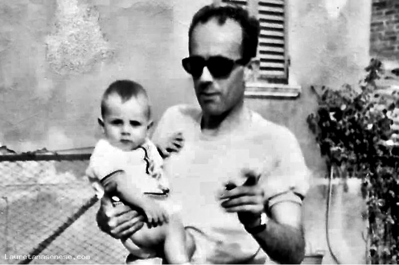 Stefano Bargagli Stoffi, oggi residente a Roma, in braccio al babbo Giacomo, quando abitavano ancora a nel castello di Montemori.