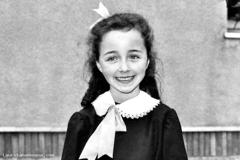 La foto, contrariamente alla prassi, è stata scattata nel piazzale della scuola, anzichè alla lavagna o seduta dietro il proprio banco.