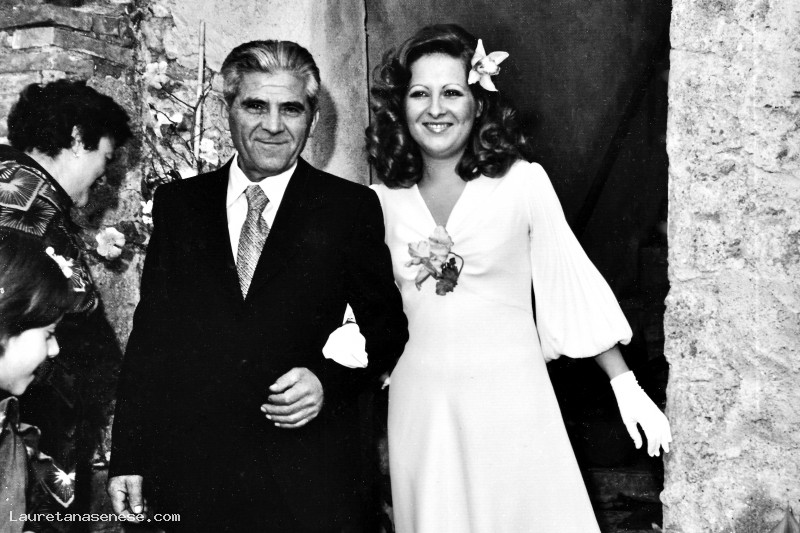 Silvana Fattori, sta per sposarsi e dopo aver indossato l'abito per la cerimonia, esce dalla su abitazione nelle Vallesi, accompagnata dal padre: Gino Fattori.