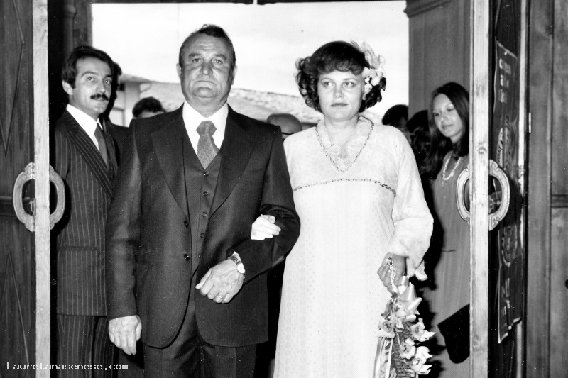 Un Sirio Papi, visibilmente emozionato, accompagna l'unica figlia: Marcella all'altare.