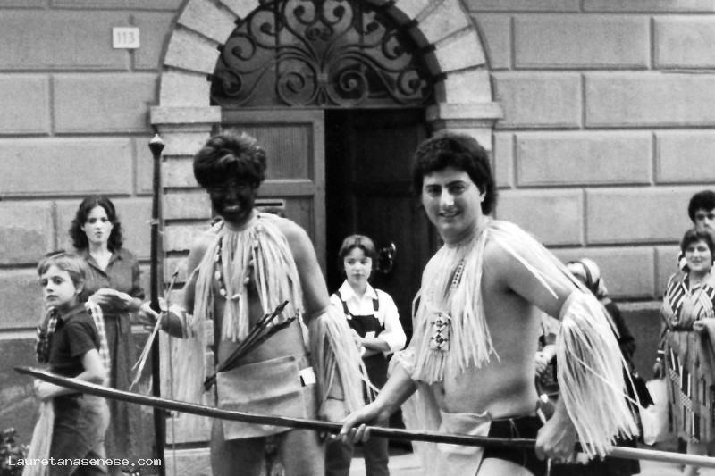 La foto dovrebbe riguardare una delle scenette organizzate per il Palio dei Ciuchi. dei due personaggi "vwstiti" da selvaggi.
