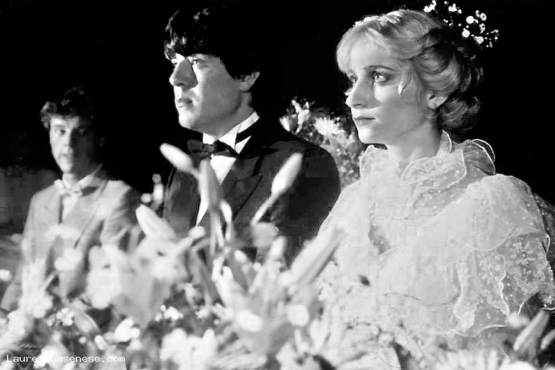 a sinistra sullo sfondo, il testimone Luca Landi, fratello dello sposo.