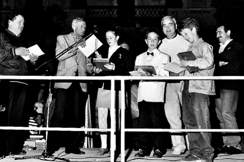 Nella foto, scattata in Piazza Matteotti, Viene premiata una giovanissima Silvia Roncucci, che successivamente, oltre a svolgere con competenza l'attività di guida turistica, è diventata una brava scrittrice.