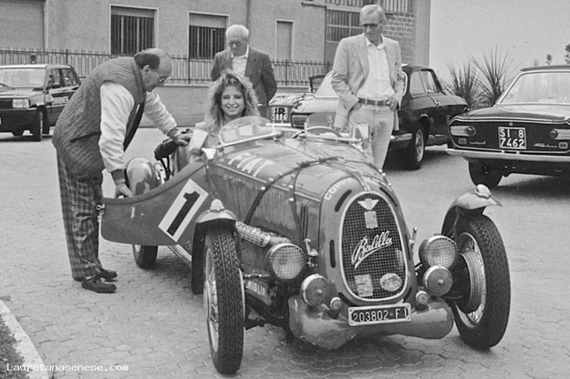 La figlia del Roncucci Enrico al volante di una vecchissima Balilla.