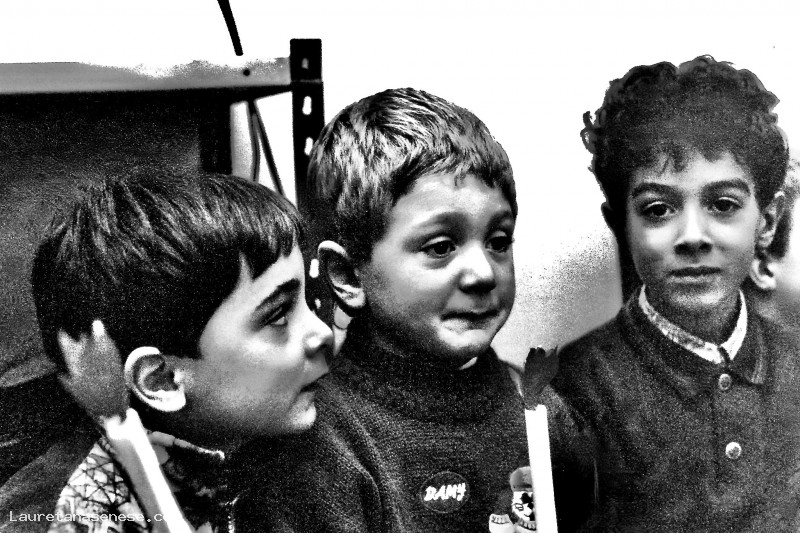 Chissà cosa avranno da raccontarsi questi tre bambini mentre partecipano alla scuola materna alla tradizionale festa di Natale?