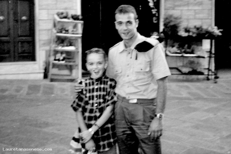 Roberto Giardi a vent'anni in divisa militare, fotografato con la nipote: Benedetta Ciacci, figlia di Carla.