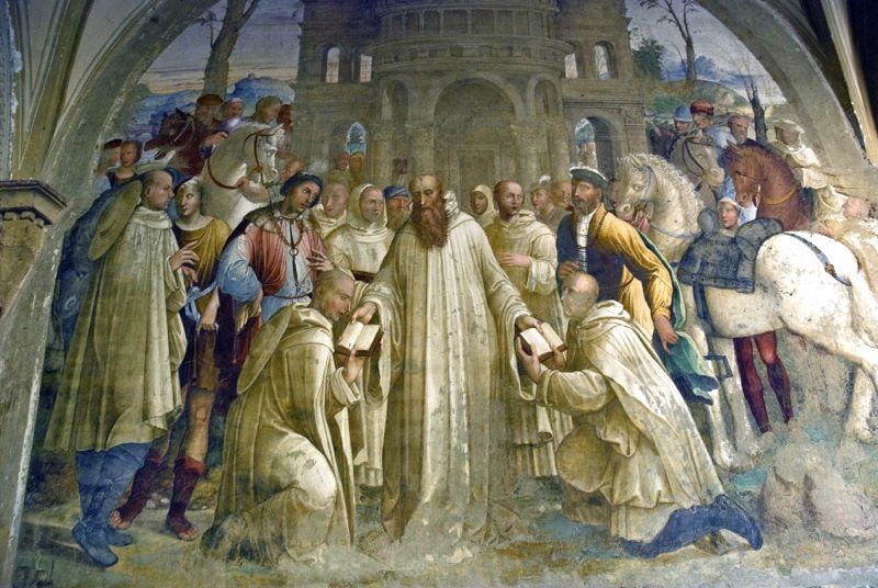 Questo è forse l'affresco più modesto tra tutti quelli del chiostro ed è l'unico realizzato da Bartolomeo Neroni, detto il Riccio . Sulla destra del pannello un'iscrizione ricorda la vista qui fatta dal Carlo V nel 1536.
