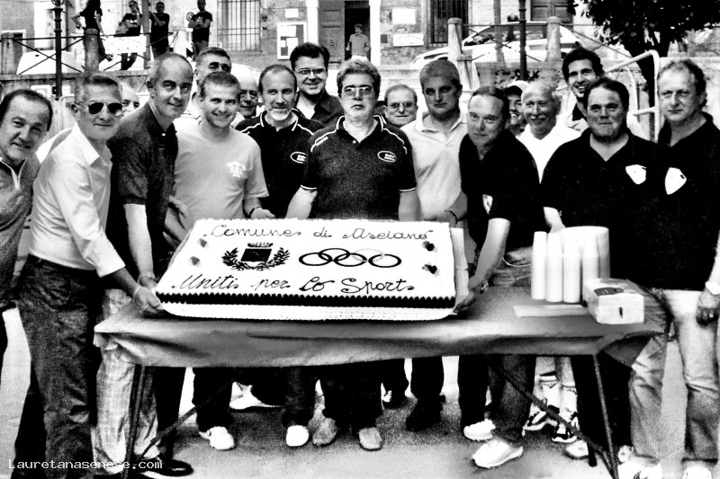 I vari rappresentanti intorno ad una cosa che interessa tutti, anche gli sportivi: ina bella torta per festeggiare insieme.