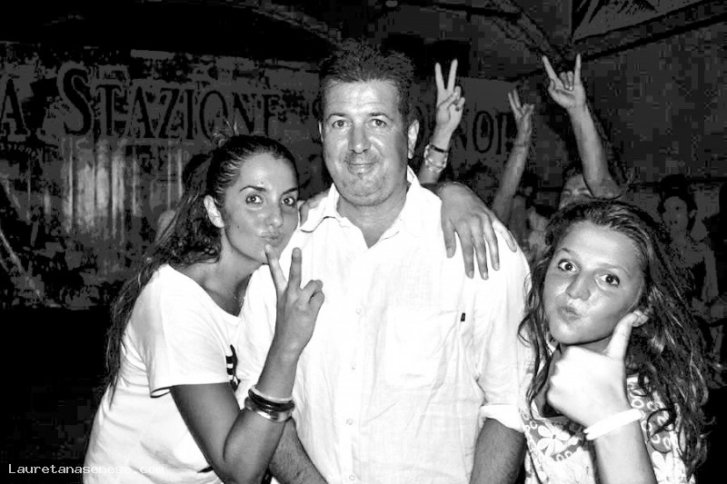 Bellissima foto di un padre: Paolo Neri, felice di essere affettuosamente circondato dalle sue belle figlie: Francesca ed Elena.