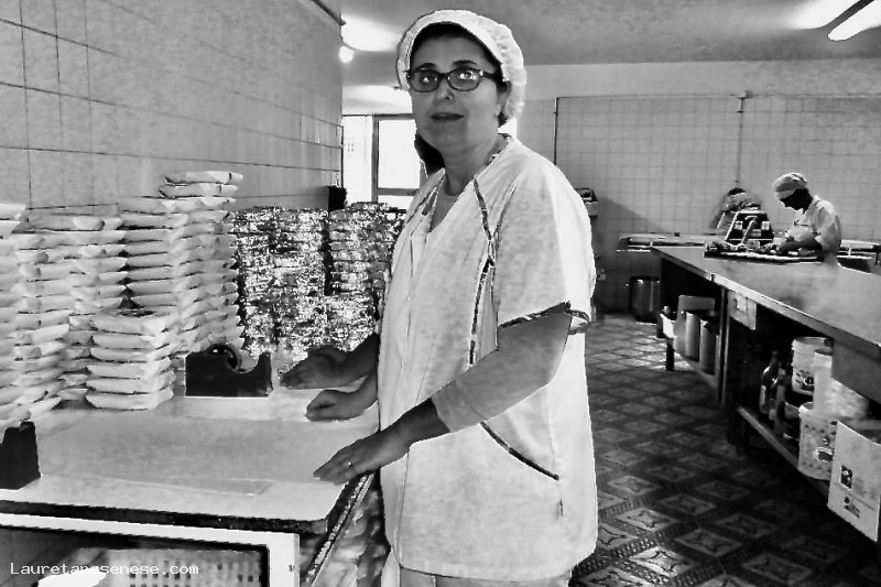 La titolare del Forno delle Crete insieme al fratello Gianpaolo, mentre incarta il famosissimo "Pampepato" ascianese nel laboratorio per la pasticceria.