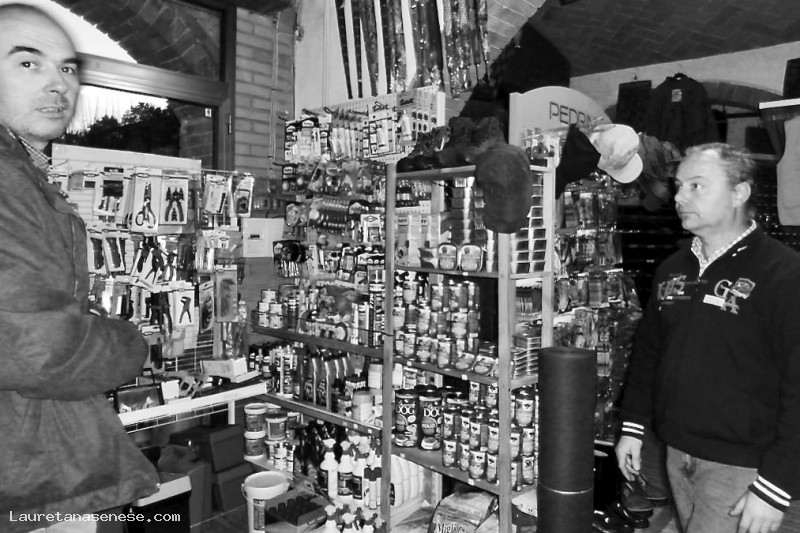 Fabio Gallorini, titolare del più noto e quotato ristorante di Asciano, sorpreso a fare acquisti nel negozio di Lia Burroni ad Asciano Scalo.
