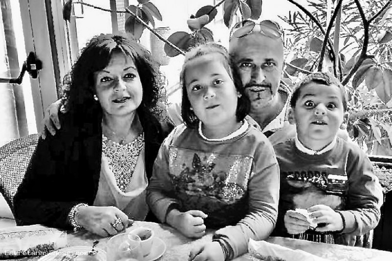 Barbara Finetti con il marito Graziano Santini e i due figli Adele la più grande e Tommaso il piccolo.