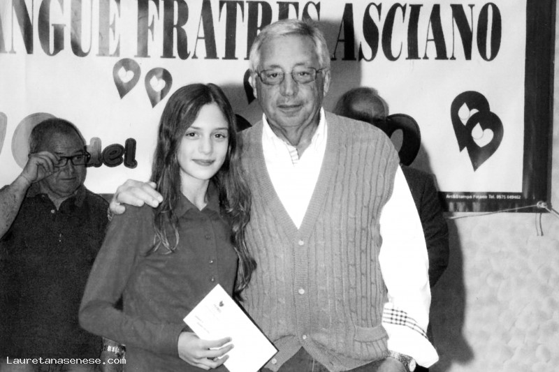 Enzo Giannettoni, come membro del gruppo dirigente locale dei Donatori Fratres, consegna il premio studenti meritevoli ad Alexandra Giovannoni.