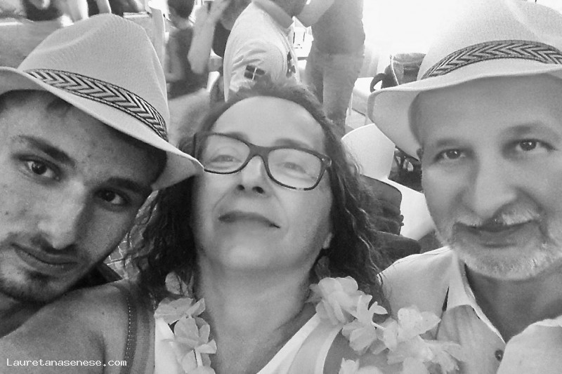Mamma Irene visibilmente felice in mezzo agli UOMINI della sua vita: