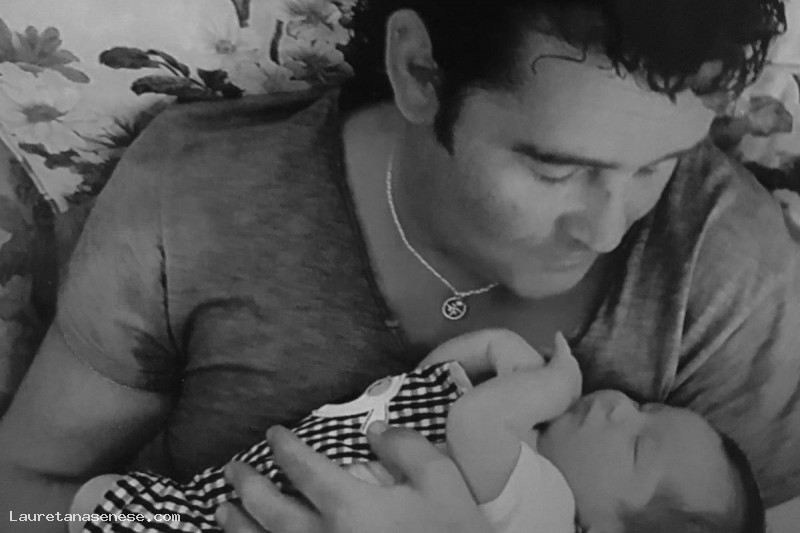 La foto esprime amore e dolcezza del padre verso il nuovo erede.