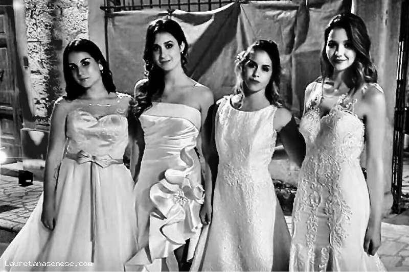Quattro fra le più belle ragazze locali, pronte per sfilare con l'abito da sposa, sulla passerella istallata in Piazza Garibaldi.
