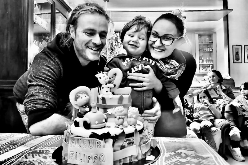 La nuova famiglia Equatori, stabilitasi a Vescona, festeggia il compleanno del figlioletto.