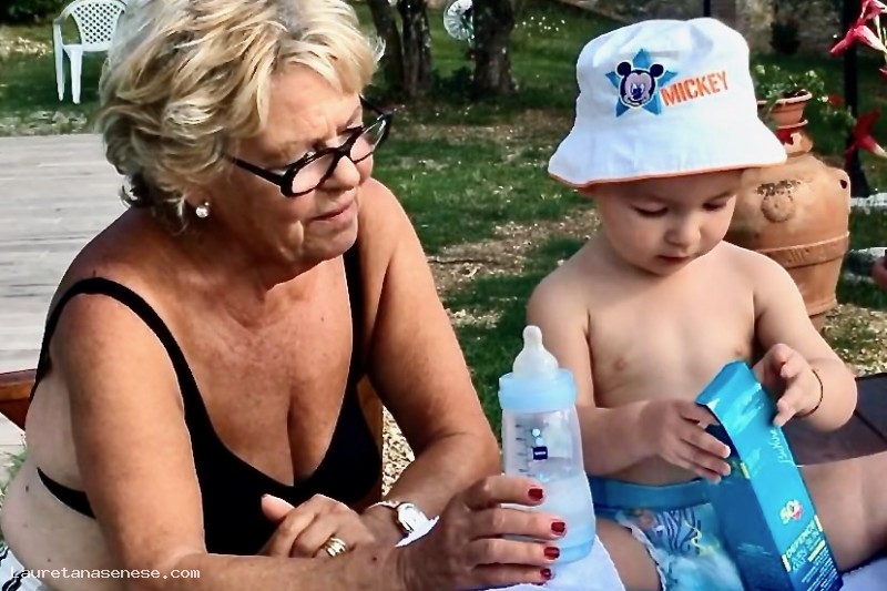 Nonna Gianna Cantelli, accudisce il nipotino Federico Ravaglia durante una visita allo zio Vincenzo al casale di Serre.
