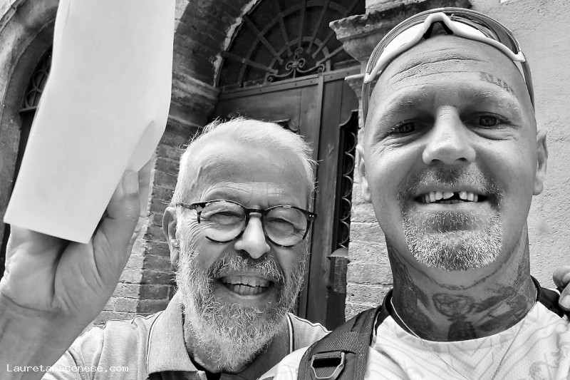 Appena uscito di casa, mi sono sentito chiamare e voltandomi ho riconosciuto Francesco Gino Sensi, il figlio di Mauro più affezionato all'Italia e ad Asciano.
