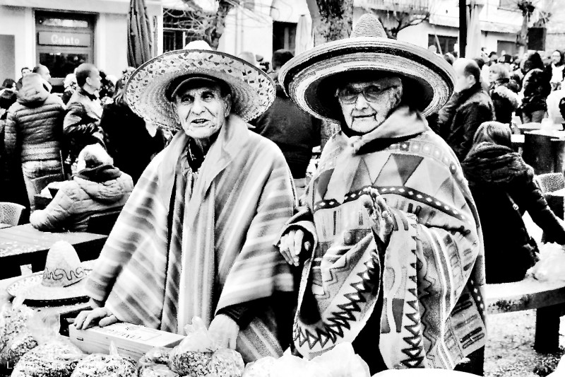 Curiosamente, per il freddo pungente, si sono dotati di ben due cappelli ciascuno: uno di stoffa e sopra un sombrero di paglia. Inoltre, hanno creduto bene di vestirsi con due poncho di lana che, in abbinamento con i cappelli, hanno il pregio di essere piuttosto caldi.