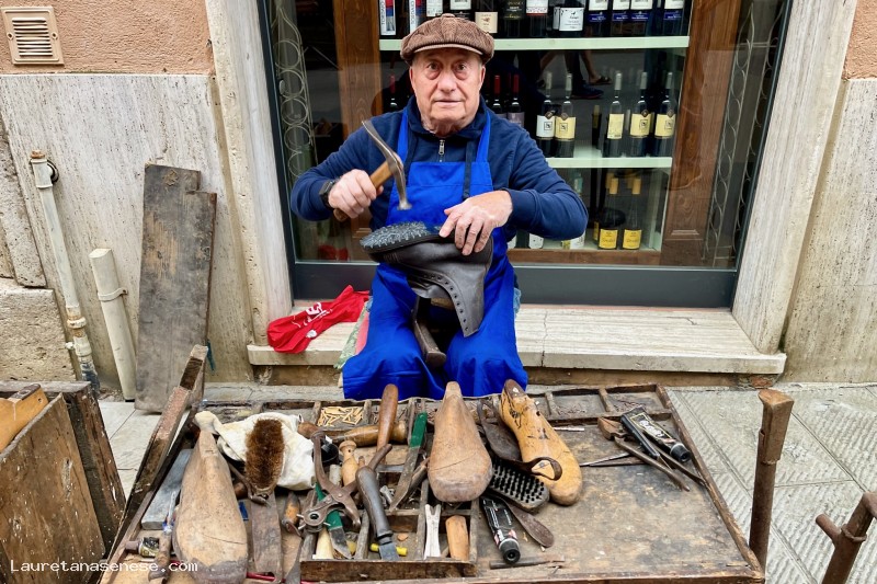 Giuliano Francini è tornato al mestiele che faceva da ragazzo, quando faceva l'apprendista da Migliore, il calzolati di Corso Matteotti.