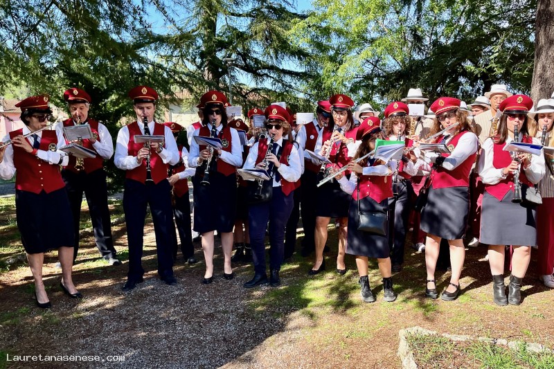 La Filarmonica Giuseppe Verdi e il Corpo Musicale A. Broggio, improvvisano alcuni pezzi musicali in attesa che altre due bande ritardatarie scendano dai bus e si organizzino.