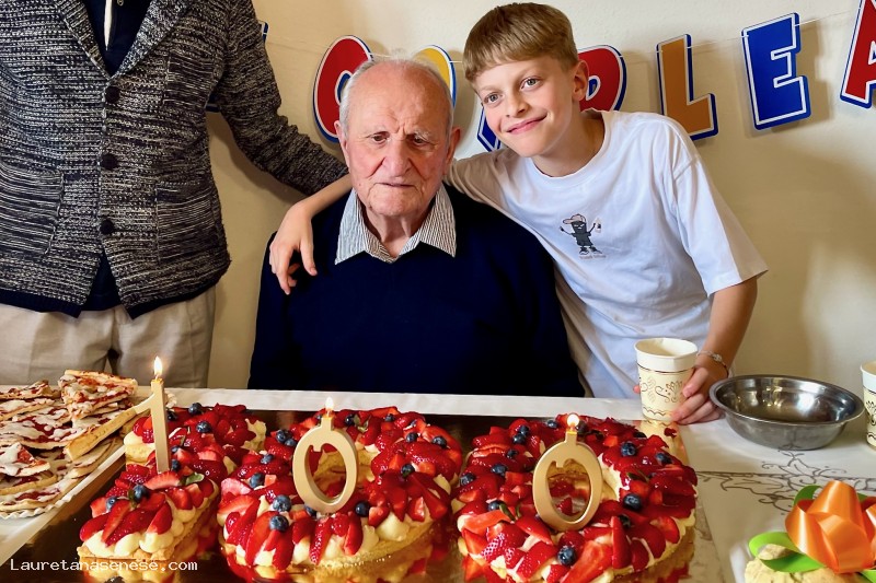 Connubio generazionale perfetto: il patriarca e il più giovane erede, al momento del soffio delle candeline.
