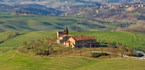 Un antico casolare, che domina immense distese di campi dall’alto di una piccola col...