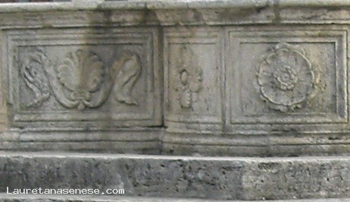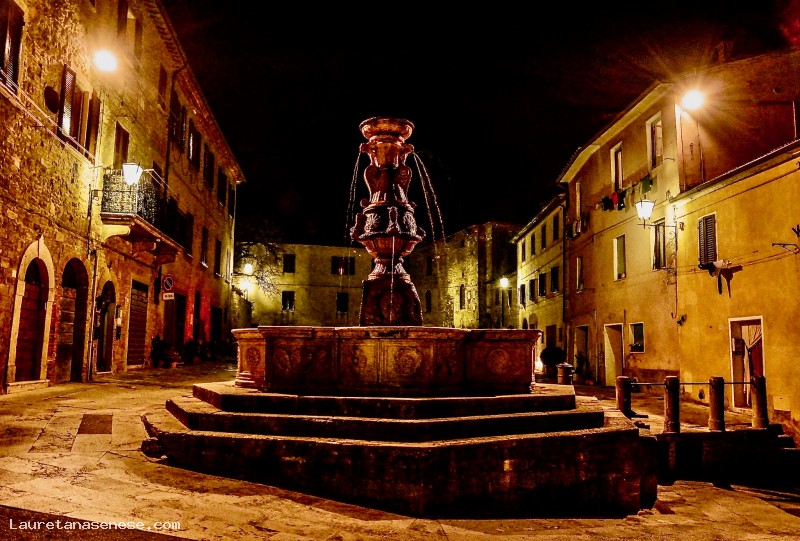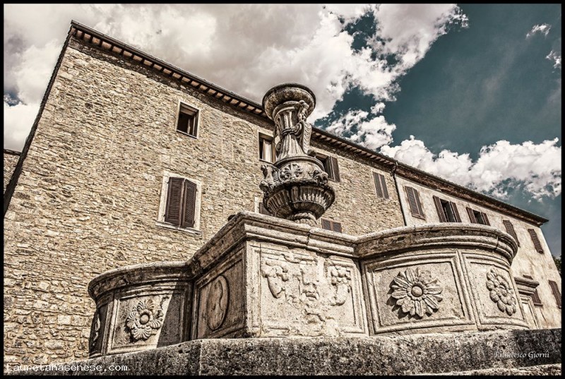 Splendida opera rinascimentale in travertino realizzata nel 1472 dallo scultore Antonio Ghini in quello che allora era il centro mercantile del paese. La superficie esterna della vasca è suddivisa in pannelli rettangolari decorati con motivi vegetali o allegorici.