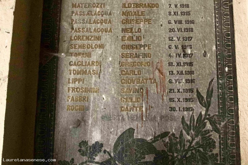 Lapide caduti della Grande Guerra all'interno di San Vito in Versuris Asciano