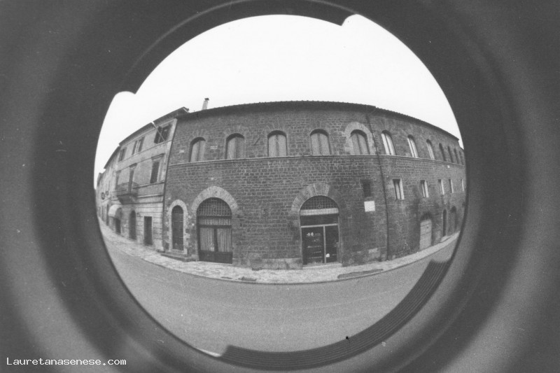 In verità, quando si parla di questo palazzo, va considerato anche quello adiacente, realizzato con la stessa struttura architetturale e apparentemente di epoca precedente. Quest'ultimo conserva un accesso carrabile che conduce nel retro dei due palazzi, dove ancora oggi esiste una fonte per abbeverare gli animali. Questo fa presupporre che nei secoli, il palazzo abbia sempre svolto il ruolo di importante Stazione di Posta, per coloro che transitavano lungo la Lauretana.