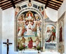 Invece i tre santi: San Girolamo, San Rocco e Santa Lucia, dipinti entro finte edicole sul muro a destra dell'altar maggiore, sono opera di giovani allievi della bottega di Benvenuto di Giovanni e sono specificamente datati 1497.