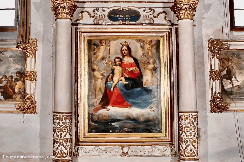 Sull'altare maggiore si vede la grande tela con La Madonna, il Bambino e Santi iniziata da Francesco Vanni nel 1610, poi continuata da Ventura Salimbeni e conclusa da Sebastiano Folli nel 1614.